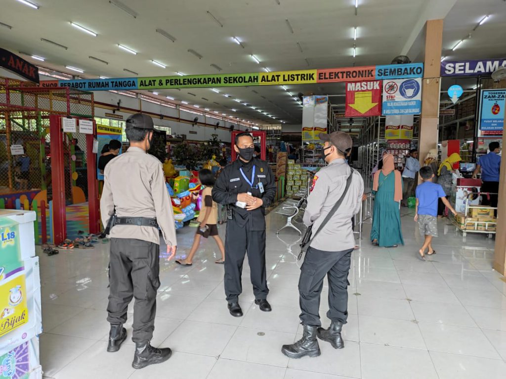 Seperti yang dilakukan Aipda Solikhin bersama 2 anggota saat sambangi Swalayan Baru. Kegiatan tersebut dilaksanakan bersama Satgas Covid-19. Di lokasi Kasir, Aipda Solikhin melaksanakan kegiatan himbauan protokol kesehatan. “Patuhi ketentuan protokol kesehatan seperti menggunakan masker, menjaga jarak dan cuci tangan ditempat yang sudah disediakan. Jangan berkerumun saat melaksanakan antrian dilokasi kasir,” imbau Aipda Solikhin dengan humanis.